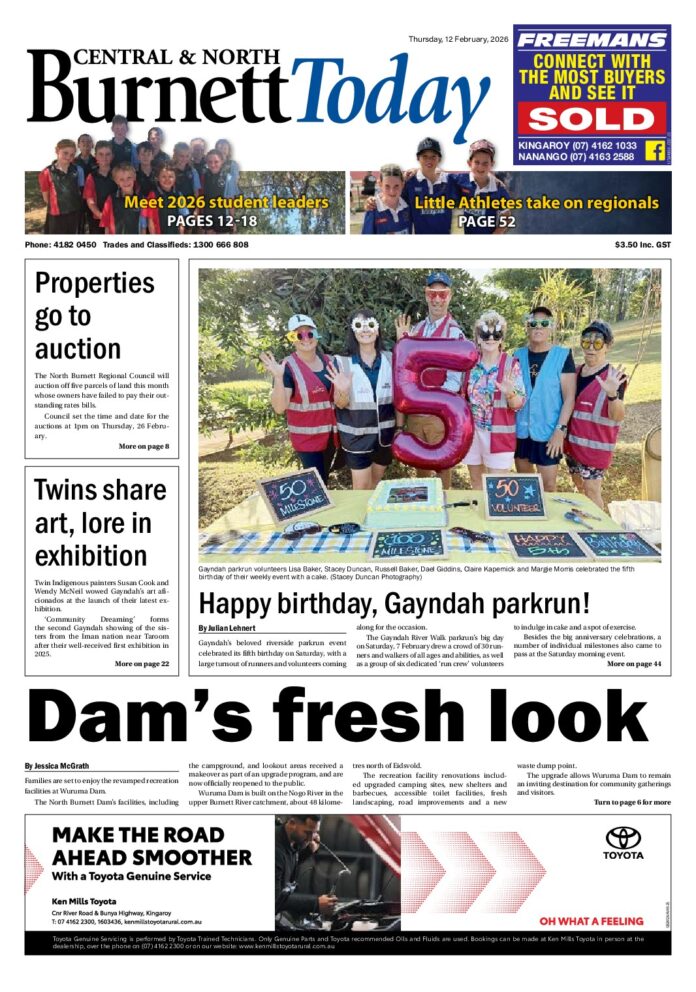 SB – Central and North Burnett Today – 12th February 2026 Subscribe or Login to see the rest of the content. Username Password * Remember Me Forgot Password News ‘Flying fox’ inbound at Benarkin 23/02/2026 The South Burnett Regional Council is installing a new flying fox zip line at Benarkin's First Settlers' Park to the tune of $85,000. Council advised... Giving to breakfast club 23/02/2026 The ladies of Wooroolin QCWA have gone above and beyond with another donation to the Kingaroy State High School Breakfast Club. On Tuesday, 10... Records, medals and PBs 23/02/2026 It was action on the track and field as athletes from Nanango attended the 2026 regional competition. Over the weekend of Saturday 7 February...