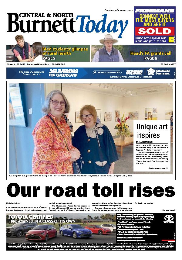 SB – Central and North Burnett Today – 18th September 2025 Subscribe or Login to see the rest of the content. Username Password * Remember Me Forgot Password News Mayor’s lunch a festive affair 05/12/2025 A festive crowd attending South Burnett Mayor Kathy Duff's 2025 Christmas lunch on Friday left no seat in the Kingaroy town hall empty. The event... Christmas comes to Yarraman 05/12/2025 It's beginning to look a lot like Christmas, with the Yarraman Christmas Carnival set to be held on Sunday, 7 December. This carnival is... Tai Chi set to celebrate Christmas 05/12/2025 Looking for something interesting to do ahead of the Christmas season? Something local to do that isn’t too stressful on your body . ....