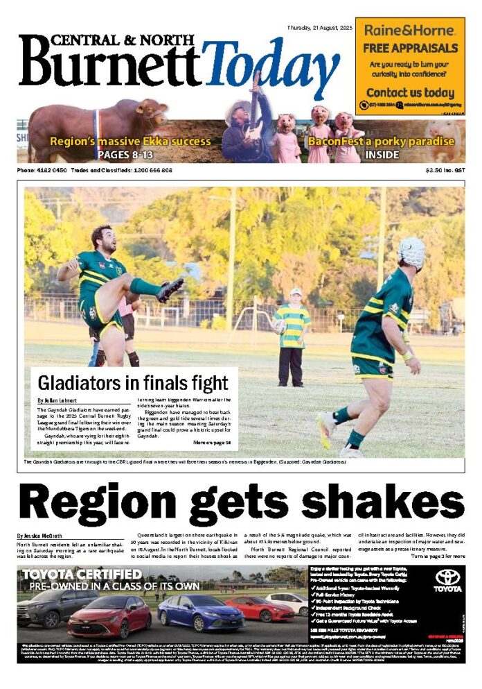 SB – Central and North Burnett Today – 21st August 2025 Subscribe or Login to see the rest of the content. Username Password * Remember Me Forgot Password News Mayor’s lunch a festive affair 05/12/2025 A festive crowd attending South Burnett Mayor Kathy Duff's 2025 Christmas lunch on Friday left no seat in the Kingaroy town hall empty. The event... Christmas comes to Yarraman 05/12/2025 It's beginning to look a lot like Christmas, with the Yarraman Christmas Carnival set to be held on Sunday, 7 December. This carnival is... Tai Chi set to celebrate Christmas 05/12/2025 Looking for something interesting to do ahead of the Christmas season? Something local to do that isn’t too stressful on your body . ....