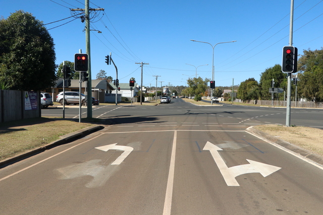 The Department of Transport and Main Roads altered the turning lanes on the western side of Kingaroy's Avoca Street in June, painting over the old markings - reportedly without informing drivers of the change. (Julian Lehnert: 490279_02)