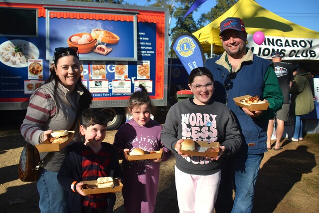 Sam and Dan, and their children Jaxon, Bella and Charlotte experienced their first BaconFest after recently moving to Kingaroy. (Jessica McGrath: 496904_05)