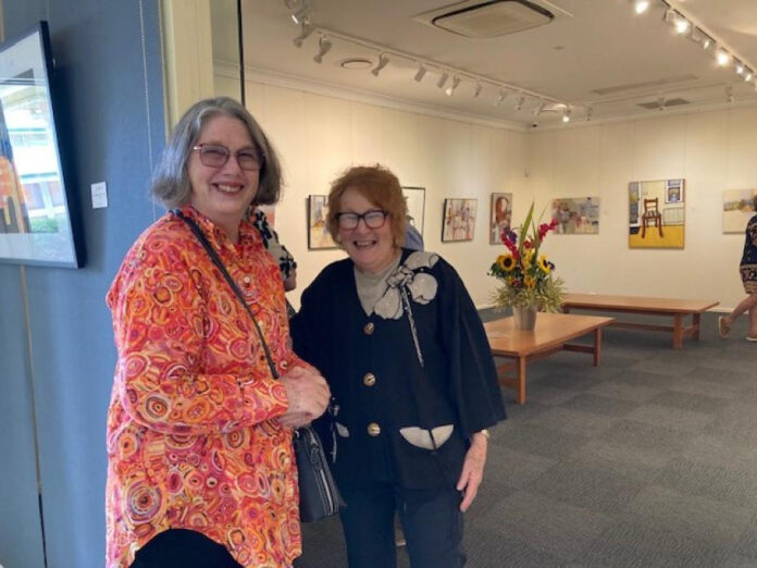 Exhibiting Maryborough artist Wendy Talbot (right) with her friend Jan who travelled from Esk for the special event at the Maryborough gallery. (SUPPLIED)