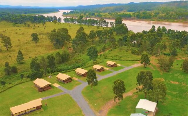 Mingo Crossing Caravan Park on the shores of the Burnett River, which features a range of award-winning 'glamping' options, will be going up for sale as part of a new decision by the North Burnett Regional Council. (Supplied: NBRC)