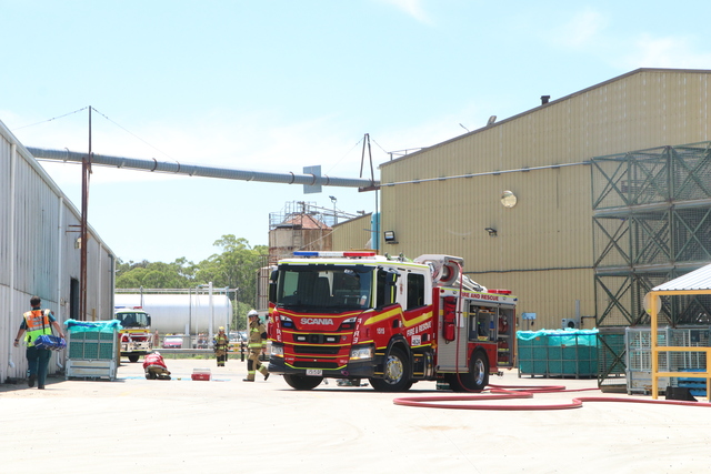 Firefighters and paramedics attended a Peanut Company of Australia lot in Kingaroy on Thursday, where a fire had broken out in an extraction vent. (Julian Lehnert: 519152_02)
