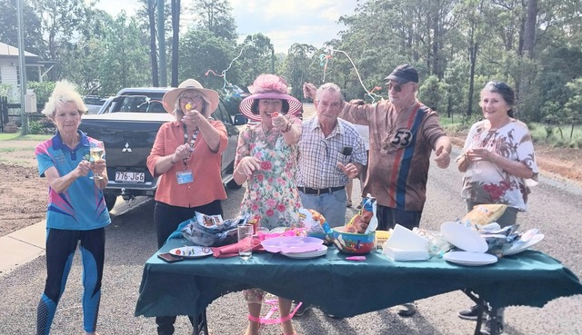 South Burnett Cr Linda Little, Mayor Kathy Duff and local residents celebrate the completion of the Works for QLD project along Morris St, Blackbutt. (SUPPLIED: Kathy Duff)