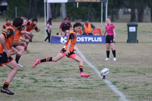 Kainen Beezley has been a force of nature during his debut season for the Mundubbera Tigers, topping the ladder in points earned and tries scored and coming away with the title of rookie of the year. (Supplied: Nicole Gibbs Photography)