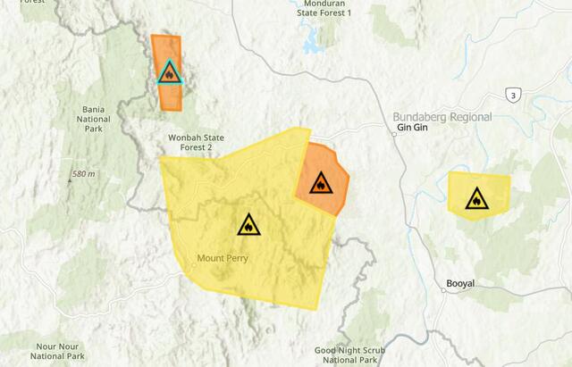 The Queensland Fire Department has declared three warning zones across the North Burnett and Bundaberg regions as of Monday afternoon, 6 October.