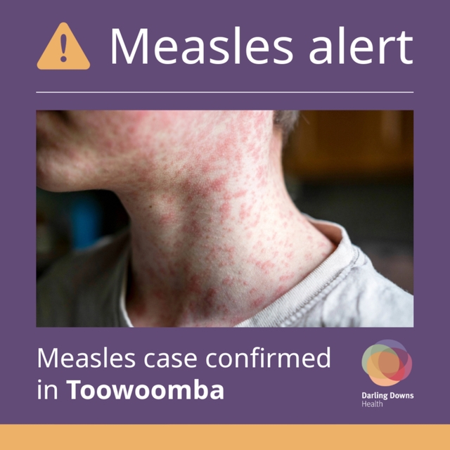 The Darling Downs Public Health Unit is warning locals to be alert for measles symptoms after a confirmed case visited St Vincent’s Private Hospital (Emergency Department) in Toowoomba while infectious.