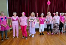 The Yarraman Line Dancing Club was radiant as they donned pink head-to-toe in support of a fellow dancer who is battling breast cancer.