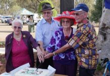 Proston’s Centenary was celebrated with the cutting of a very large sponge cake which was shared amongst the families gathered.
